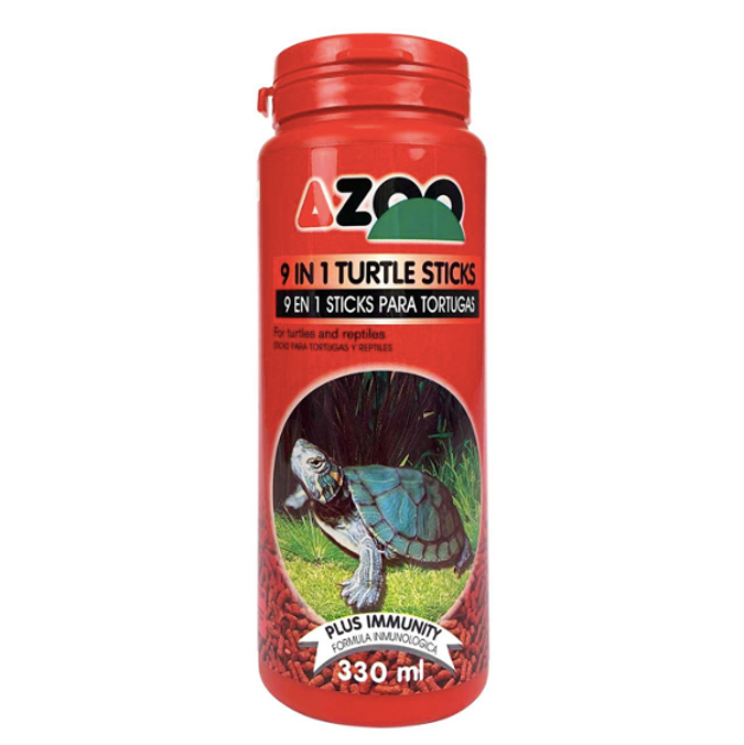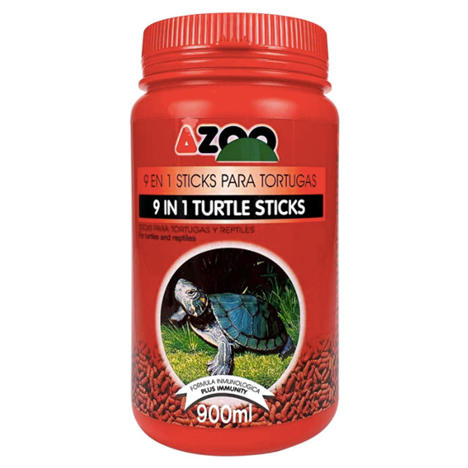 Las tortugas acuáticas del género Pseudemys son muy populares como mascotas por su gran adaptabilidad y robustez. Sin embargo, muchas de ellas acaban con problemas pulmonares, hongos en la piel, infección en los ojos, caparazones blandos, o enfermedades intestinales. Salvando las condiciones del agua, su temperatura y acceso a la luz natural, todas estas enfermedades comunes suelen ser causadas por una alimentación inadecuada o insuficiente. Hemos de tener presente que los ejemplares adultos son vegetarianos, mientras que los más jóvenes son carnívoros. Es por ello que AZOO tiene una fórmula distinta para cada caso, usando AZOO 9 in 1 Turtle Sticks para las adultas y AZOO 9 in 1 Small Turtle Sticks para los ejemplares jóvenes. Estos productos cubren todas las necesidades diarias de alimentación de las tortugas y previenen eficazmente todas las enfermedades. Del mismo modo su formulación favorece un desarrollo óseo perfecto y un crecimiento saludable. Puede alimentar con este pellet básico a toda clase de tortugas acuáticas y muchos reptiles con dietas similares.