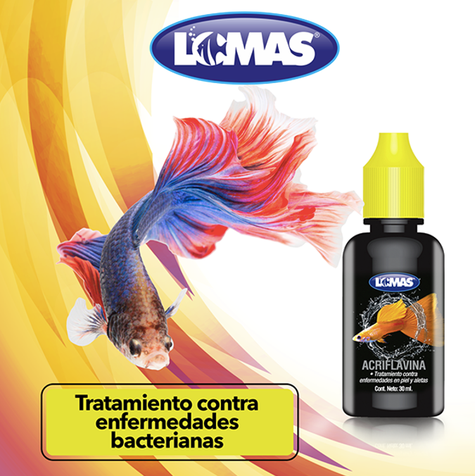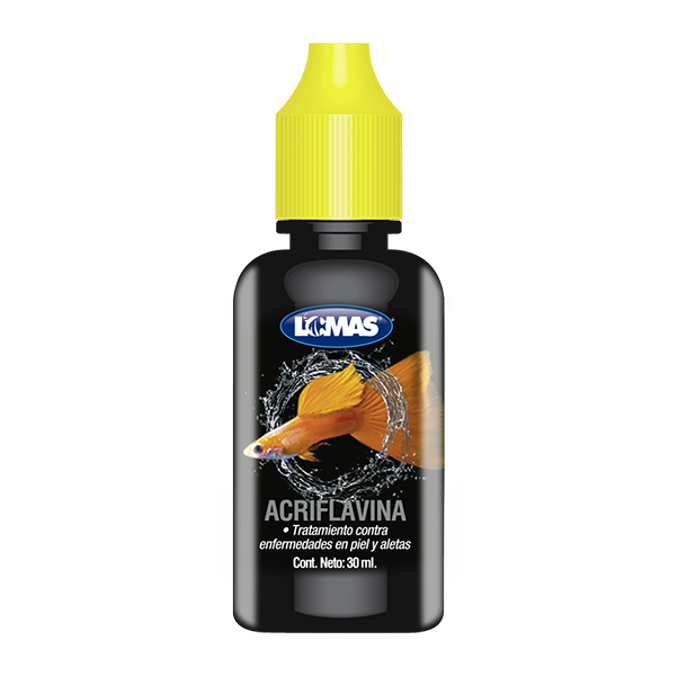 Solución para uso preventivo y terapéutico, Se utiliza para enfermedades de Ia piel producidas por hongos y bacterias. La acriflavina se ha usado tradicionalmente para desinfectar huevos de peces marinos como es el caso del barramundi (Lates calcarifer) y en el tratamiento de oodiniosis (Velvet, enfermedad de terciopelo) conveniente para la mayoría de las especies de peces.