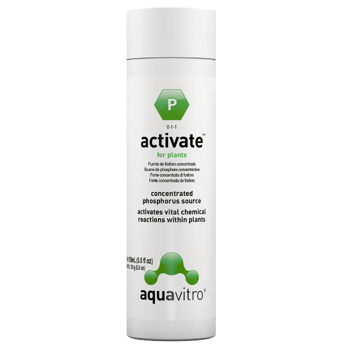 activate es una fuente concentrada (6.000 mg/L P) de fósforo. Cuando se usa según las indicaciones, activate mejorará y acelerará el crecimiento de las plantas acuáticas sin mejorar el crecimiento de algas. Para obtener el máximo beneficio, use con synthesis.