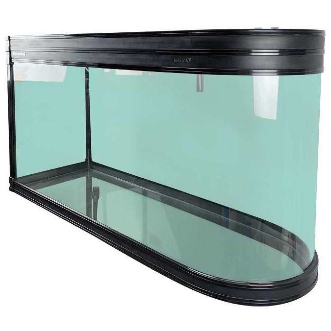 Los Acuarios BOYU Serie ZDT presentan un vidrio lateral plano, unido a otro vidrio termo-formado con una curva de 180° que cubre la otra cara lateral, la frontal y la posterior en una sola pieza.