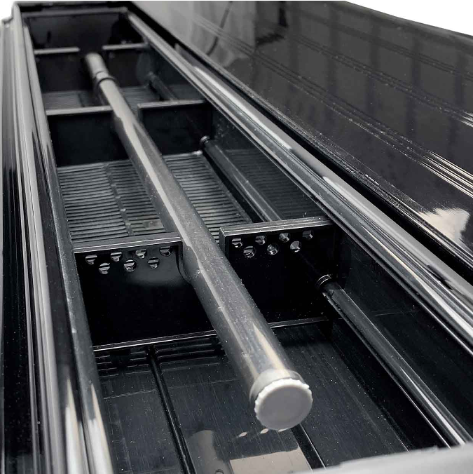 Presenta un acabado premium en aluminio de extrusión lacado en negro brillante.