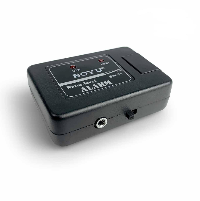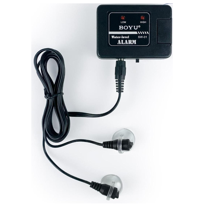 Este aparato electrónico vigilará por usted el nivel de agua de su acuario o sumidero las 24 horas del día. Mediante avisos luminosos y acústicos el SW-01 le alertará cuando el nivel de agua sea demasiado alto o bajo con respecto a sus dos sensores de esta nueva versión.