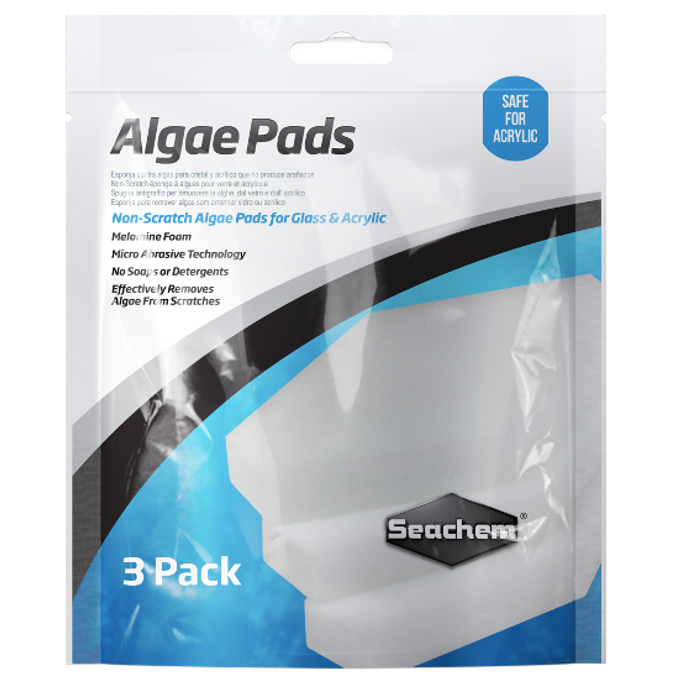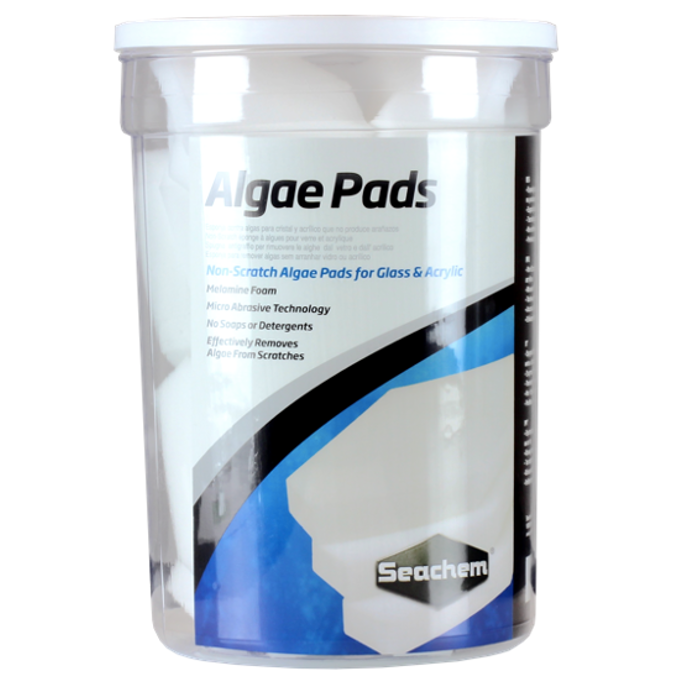 AlgaePads son almohadillas para algas sin arañazos para vidrio y acrílico. La espuma de melamina utiliza tecnología micro abrasiva para eliminar fácilmente las algas de los lados de su acuario. Son particularmente efectivos para eliminar las algas sin los arañazos. Son químicamente inertes y no usan jabones ni detergentes. Su color blanco contrasta con las algas oscuras, lo que hace que sea más fácil ver cuando las áreas están completamente limpias.