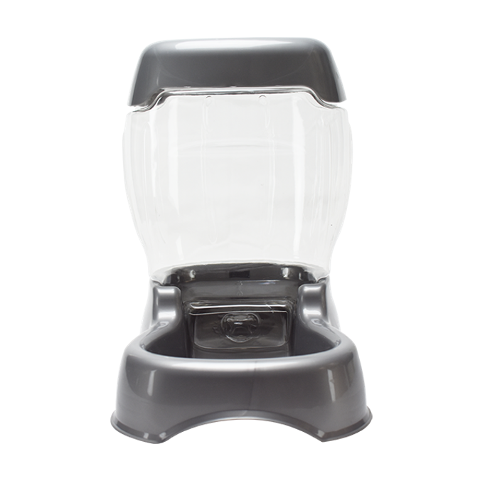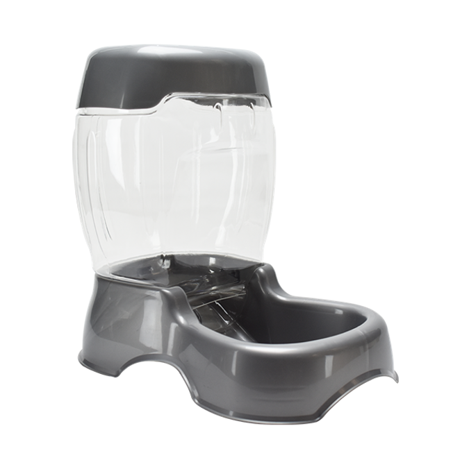 Alimentador Pet Café de diseño elegante que repone automáticamente el depósito de alimentos cuando los niveles bajan. Cuenta con una tolva ecológica de almacenamiento con boca extra ancha y tapa extraíble para limpiar y rellenar fácilmente. La base con diseño moderno, facilita su manejo.