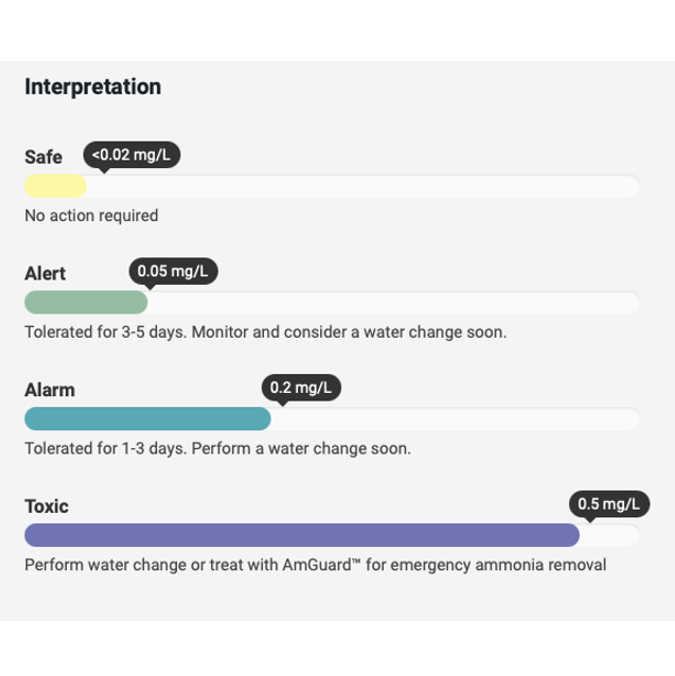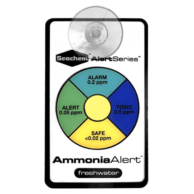 Ammonia Alert es un dispositivo de color innovador para detectar y monitorear continuamente el amoníaco libre de tóxicos. Un sensor cambia reversiblemente de amarillo a verde a azul, en relación con la concentración de amoníaco. No se necesitan kits de prueba, productos químicos o procedimientos. El dispositivo detecta menos de 0.05 mg / L (ppm) de amoníaco libre y lo alerta sobre el asesino número uno antes de cualquier signo de estrés. Dura más de un año. No se recomienda el uso de este producto a pH ácido. Uso marino o de agua dulce.