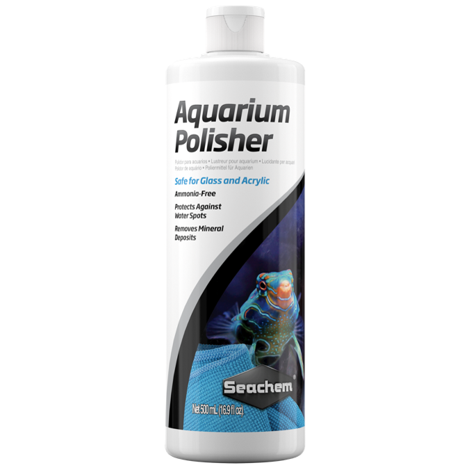 Seachem Aquarium Polisher es un pulidor multisuperficie para usar en el exterior de acuarios de vidrio o acrílicos, así como en otras superficies. El pulidor de acuarios no contiene amoníaco y es perfecto para un uso seguro en y alrededor de acuarios o terrarios. El pulidor de acuarios elimina fácilmente los depósitos minerales y las manchas de agua y ayuda a proteger las superficies del polvo, la sal, los minerales y las huellas dactilares.