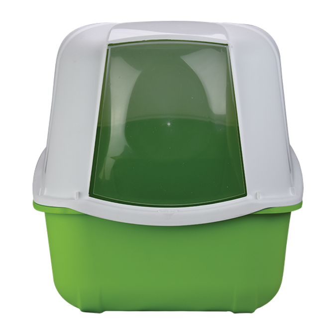 Arenero de la marca italiana, fabricado plástico durable y amigable con el ambiente. Su base amplia y puerta plegable permite que el gato se sienta cómodo para hacer sus necesidades sin esparcir arena a su alrededor, al mismo tiempo es ideal para mantener un ambiente libre de malos olores gracias a su sistema de filtración que se encuentra en la parte superior de este.