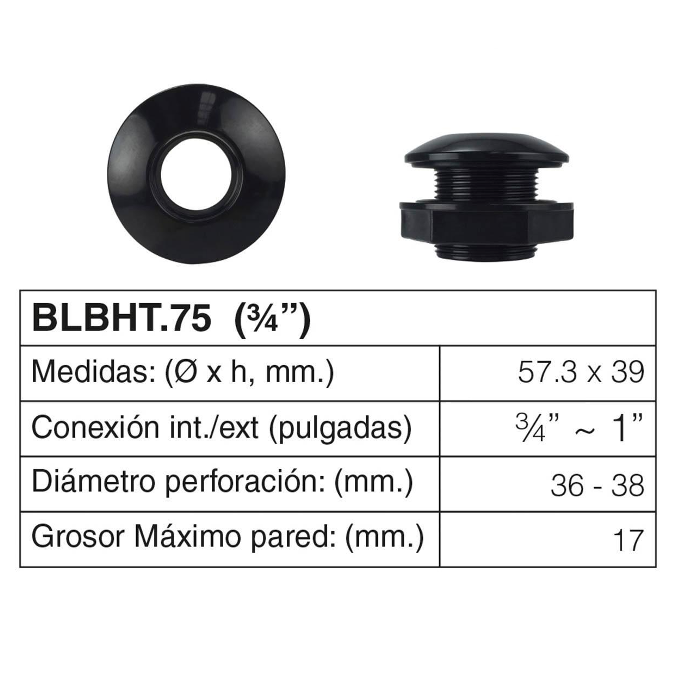 Sus 5 modelos pueden abarcar orificios con diámetros desde 30 hasta 77 mm. y cuentan con un empaque doble de gran calidad con un sistema de apriete por tuerca hexagonal.
