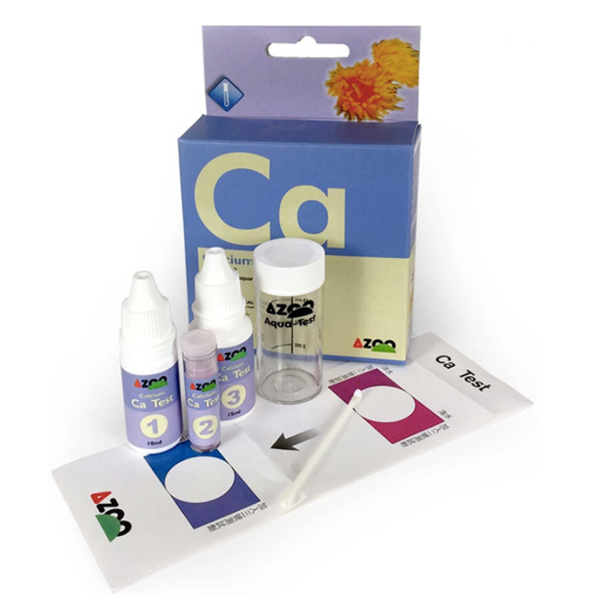 Kit de medición para analizar la tasa de Calcio (Ca+) en acuarios de agua salada y arrecife. Con este sencillo kit bastará con seguir unos sencillos pasos para obtener la tasa de calcio en su acuario marino en tan solo un minuto. Este test es muy preciso y fácil de usar gracias al empleo de sencillos procedimientos y unos colores muy bien diferenciados en sus reactivos. Cada kit contiene una carta comparativa de colores, un vial de medición, dos frascos con reactivos líquidos, un frasco con polvo reactivo y una cuchara dosificadora. Cada Kit de medición es capaz de obtener hasta 35 lecturas de calcio en su acuario.