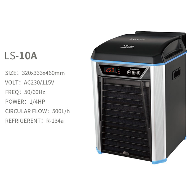 Los Enfriadores BOYU Serie LS garantizan el máximo confort para los organismos acuáticos más exigentes. Poseen un motor de alta tecnología súper silencioso, capaz de enfriar el agua de su acuario con una alta eficiencia energética.