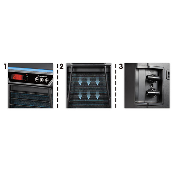 Esto permite un control total de la temperatura de su acuario gracias a su capacidad para realizar operaciones electrónicas memorizables y automáticas para enfriar el agua.