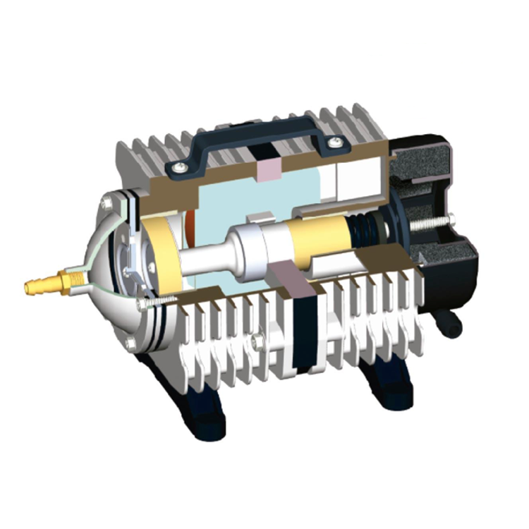 La línea profesional de compresores BOYU ACQ es la más moderna potente y eficiente. Sus 6 modelos abarcan poten- cias que varían desde los 70 hasta los 150w, con unos cauda- les desde los 60 a los 160 l/m y unas presiones nominales de hasta 0.035 MPa. Estas prestaciones permiten ofrecer airea- ción a sistemas acuáticos densamente poblados para acuicul- tura ornamental o de consumo, estanques o sistemas profe- sionales de acuariofilia de hasta 30.000 litros de capacidad.