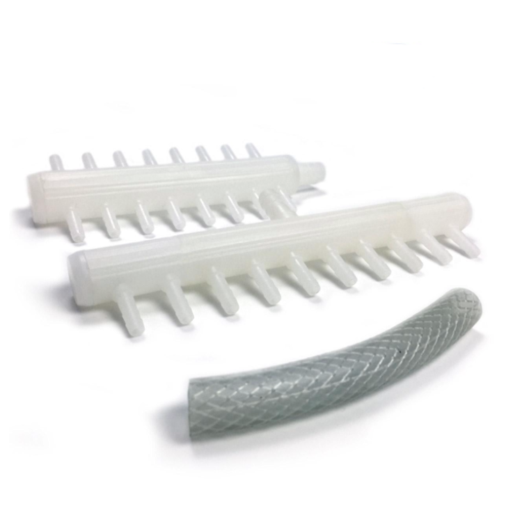 Incluyen una conexión de latón y un distribuidor de hasta 16 salidas de 4/6 mm. Poseen una carcasa externa metálica que aporta una gran solidez al conjunto, además de una práctica asa y un soporte anclable mediante tornillos, ambos elemen- tos fabricados en plástico ABS de gran calidad. Estos aireado- res están diseñados mediante computadora con sistema CAD y fabricados bajo los estrictos controles de calidad que ofrece BOYU.