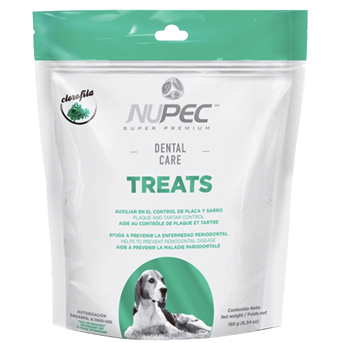 Deliciosos premios para mantener la salud dental de tu perro. Con clorofila y calcio para uno dientes limpios y fuertes.