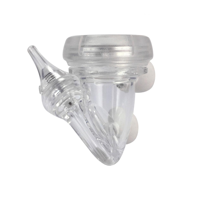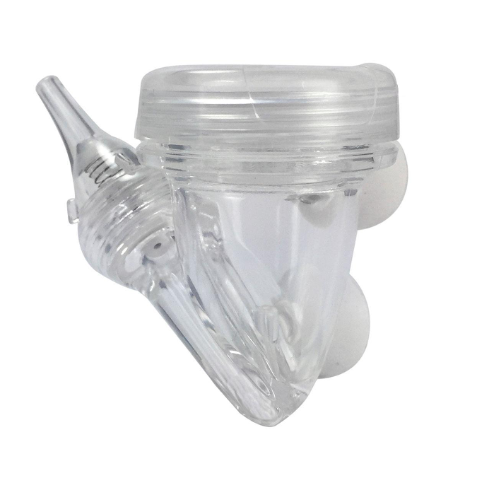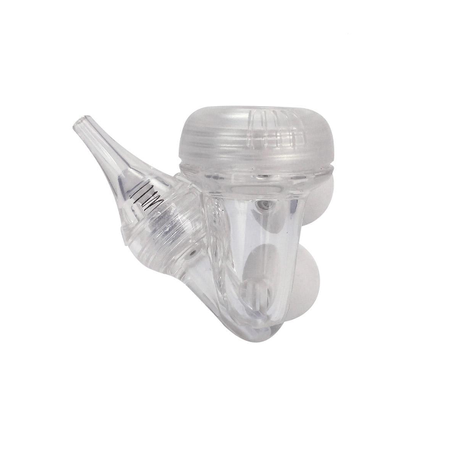 Su diseño en “V” de inyección tangencial evita curvas innecesarias en la manguera que puedan colapsarla, permitiendo además registrar las burbujas en su interior para su conteo.