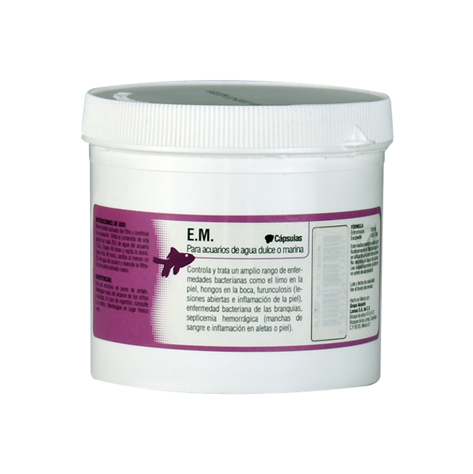 Tratamiento para un amplio rango de enfermedades bacterianas en acuarios de agua dulce o marina, en especial contra las bacterias gram positivas. Puede administrarse en enfermedades como: - Limo en la piel - Hongos en la boca - Furunculosis (lesiones abiertas o inflamación en la piel) - Enfermedad bacteriana en las branquias - Septicemia hemorrágica (manchas de sangre, inflamación en aletas o piel).