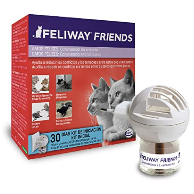 FELIWAY FRIENDS es una solución fácil de usar para reducir los conflictos entre gatos que viven juntos, y evitar signos como luchas, persecuciones, bloqueos y mirar fijamente.