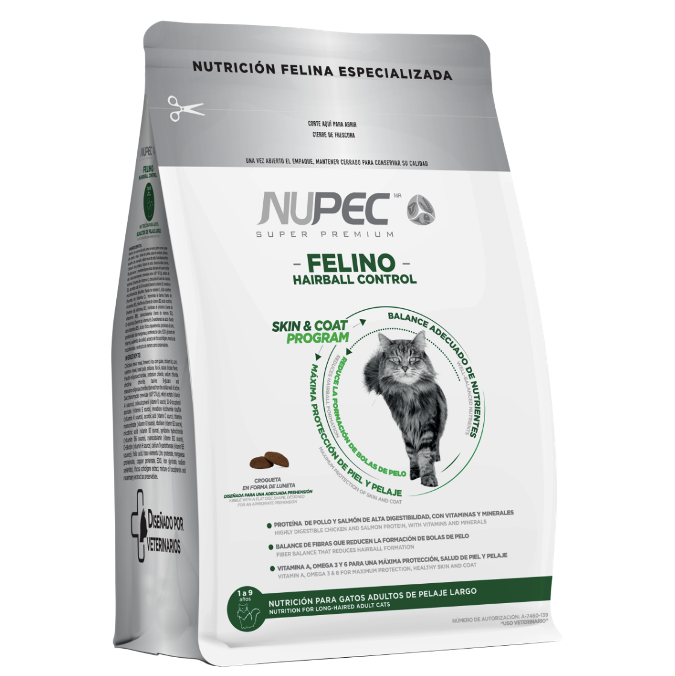 El metabolismo de un felino de pelaje largo requiere de una nutrición especializada. Por ello Nupec Hairball es un alimento con un balance adecuado de nutrientes que ayuda a reducir la formación de bolas de pelo, brindándole máxima protección de piel y pelaje.