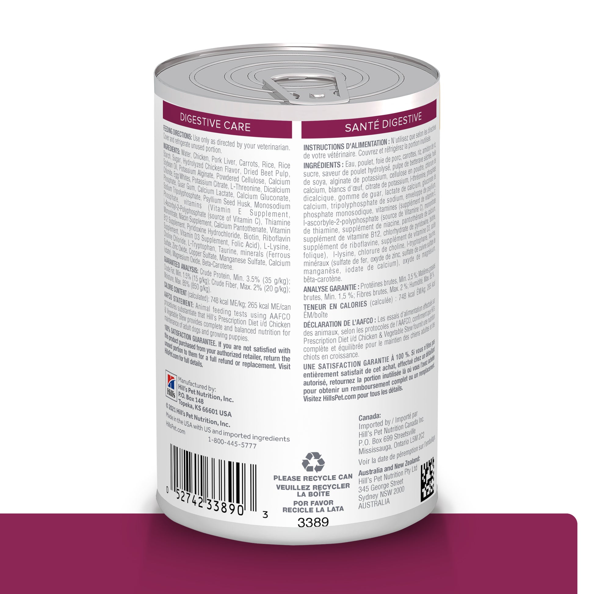Hill's Prescription Diet i/d es nutrición altamente digerible y de gran sabor para perros que ha demostrado clínicamente que ayuda a calmar los trastornos digestivos. Fortificado con la tecnología de ingredientes ActivBiome+ patentada de Hill's que ha demostrado clínicamente que activa rápidamente el microbioma intestinal para respaldar la salud y el bienestar digestivos.