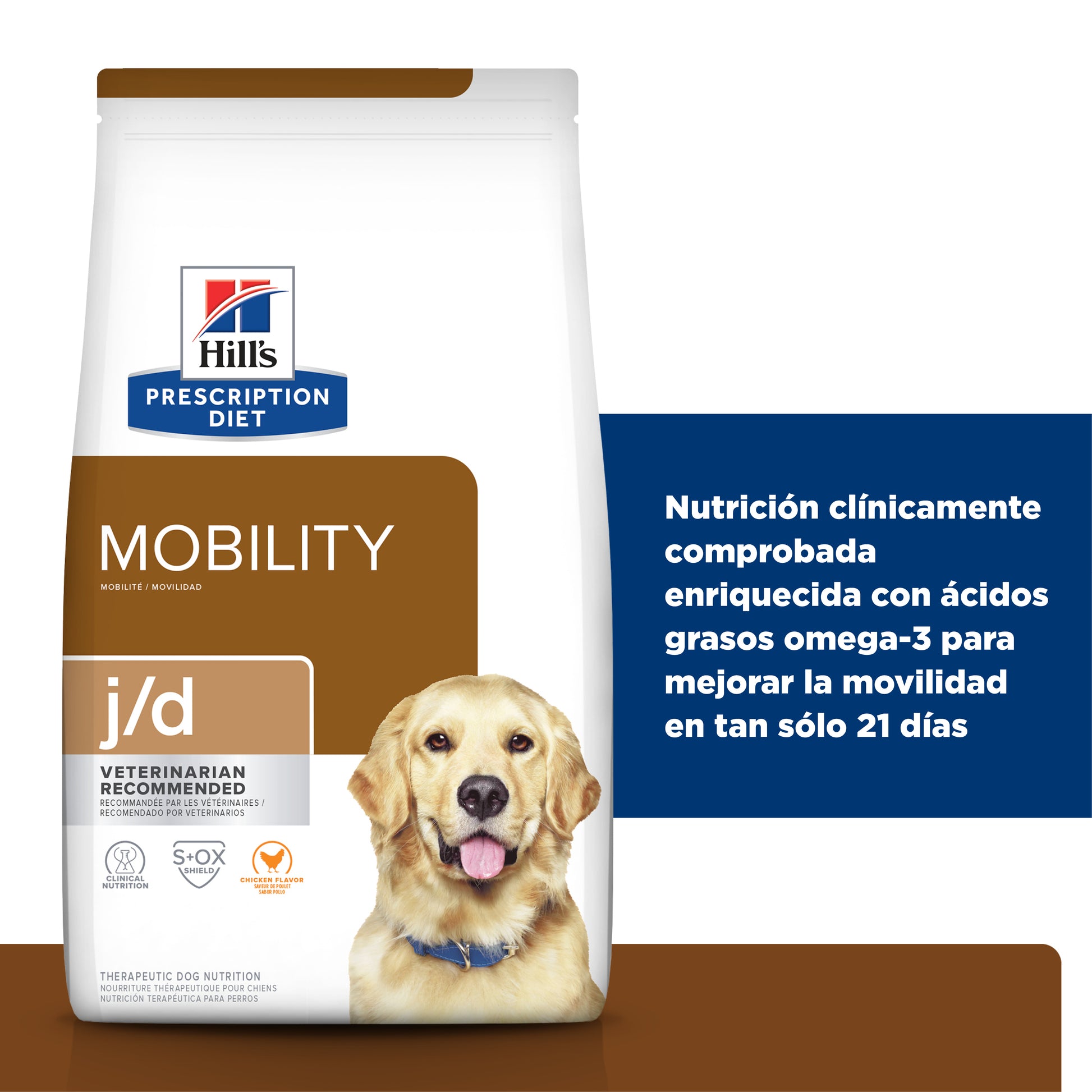 Hill's Prescription Diet j/d es nutrición clínicamente probada enriquecida con ácidos grasos omega-3 para mejorar la movilidad en tan solo 21 días. Especialmente formulado para apoyar la salud de las articulaciones de tu perro.