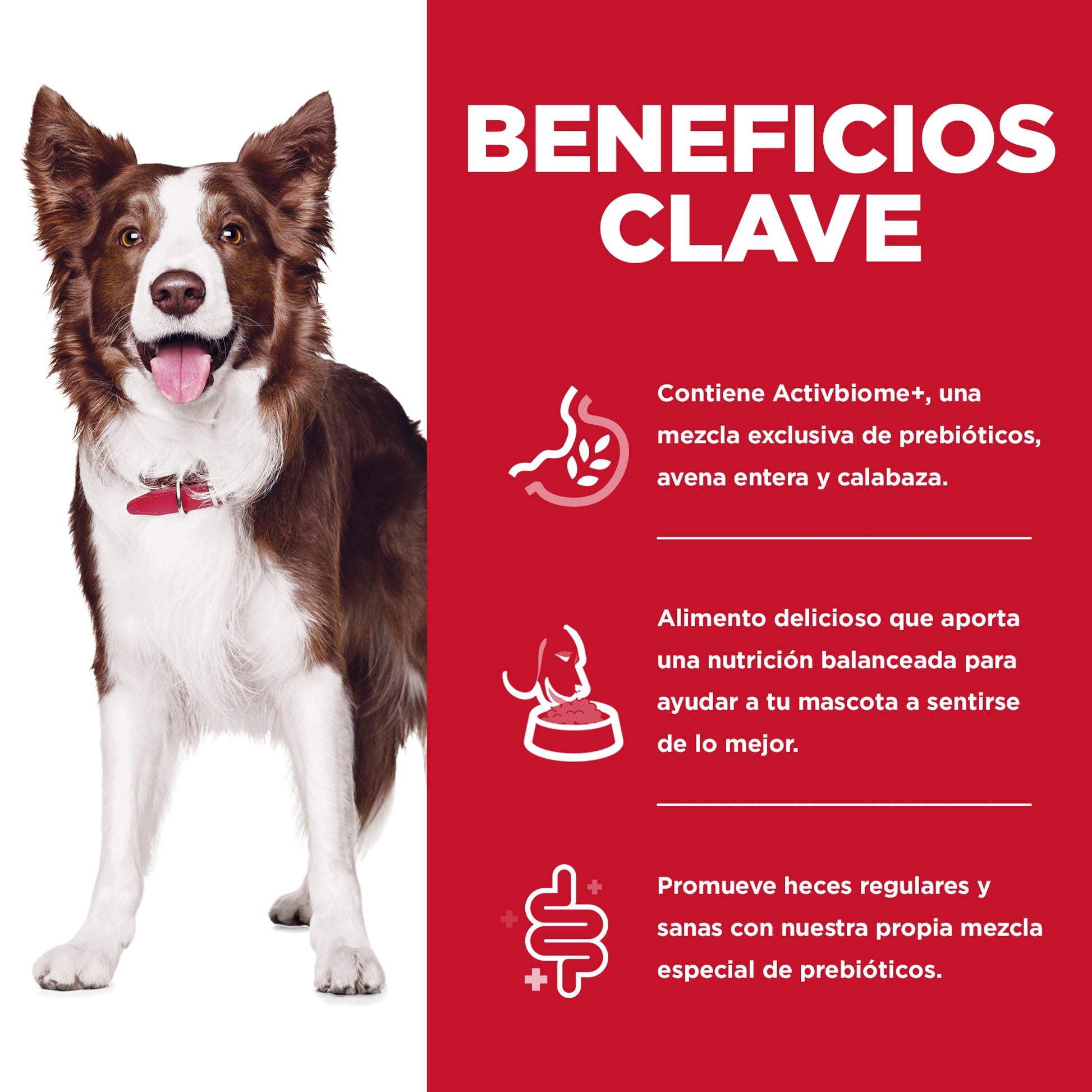 Las croquetas para perro adulto Hill's Science Diet Perfect Digestion, alimento de cuidado digestivo, está diseñado para nutrir y mantener el bienestar de tu mascota. Estas croquetas para perro están enriquecidas con nuestra innovadora mezcla de prebióticos, ActivBiome+, que alimenta el microbioma intestinal y es esencial para una salud óptima. Gracias a la ciencia, este alimento promueve una digestión saludable y un bienestar general, formulado con proteína de alta calidad, vitaminas y minerales. Hill's Science Diet es la marca de alimento para perro más recomendada por veterinarios en EUA, con 100% de satisfacción garantizada o te devolvemos tu dinero.