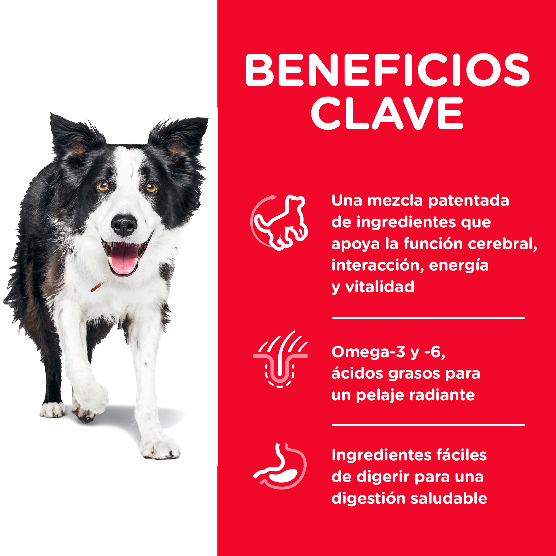 Las croquetas para perro senior Hill's Science Diet Adult Senior Vitality está especialmente formulado para perros adultos mayores de 7 años, proporcionando una nutrición equilibrada con precisión que mejora su capacidad diaria de levantarse y moverse. Estas croquetas para perro están enriquecidas con vitamina E y ácidos grasos Omega-6 para promover un pelaje saludable y brillante con un delicioso sabor a pollo. Gracias a la ciencia, este alimento está formulado con un complejo de vitaminas y minerales esenciales para apoyar la vitalidad y el bienestar general de tu mascota. Hill's Science Diet es la marca de alimento para perro más recomendada por veterinarios en EUA, con 100% de satisfacción garantizada o te devolvemos tu dinero.