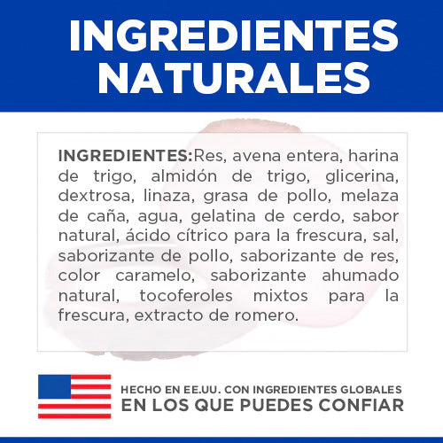 Los premios naturales para perro con carne de res real de Hill’s Science Diet son la elección perfecta para aquellos que buscan dar a sus mascotas un regalo saludable y delicioso. Gracias a la ciencia, estos premios para perro han sido formulados sin conservadores ni saborizantes artificiales, garantizando el más alto nivel de calidad y nutrición. Ideal para consentir a tu mejor amigo, cada premio proporciona un sabor irresistible y una textura crujiente que ellos amarán.