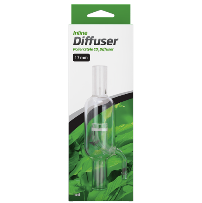 El difusor en línea de vidrio de 17mm es un difusor de CO2 en línea de estilo polen que se coloca en la línea de salida del filtro o la bomba del acuario para difundir eficientemente el gas CO2 en el acuario. Esta colocación del difusor evita la necesidad de un difusor en el acuario y reduce significativamente la visibilidad del sistema de inyección de CO2 en el paisaje acuático. Esto también permite una difusión más rápida de CO2 en el sistema y puede permitir niveles más consistentes y reducir el desperdicio de CO2 o la sobredosis de CO2.