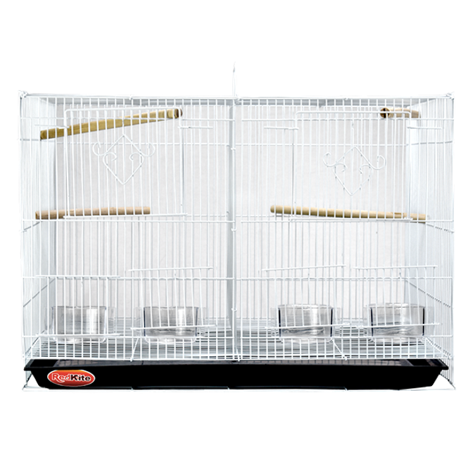 Jaula doble Madrid para ave, es un hábitat adecuado para aves pequeñas, su diseño horizontal permite un aleteo completo brindando un desarrollo adecuado en las alas de tus aves. Con dobles elementos como perchas, bebederos y comederos para permitir que todos los ejemplares estén cómodos y seguros.