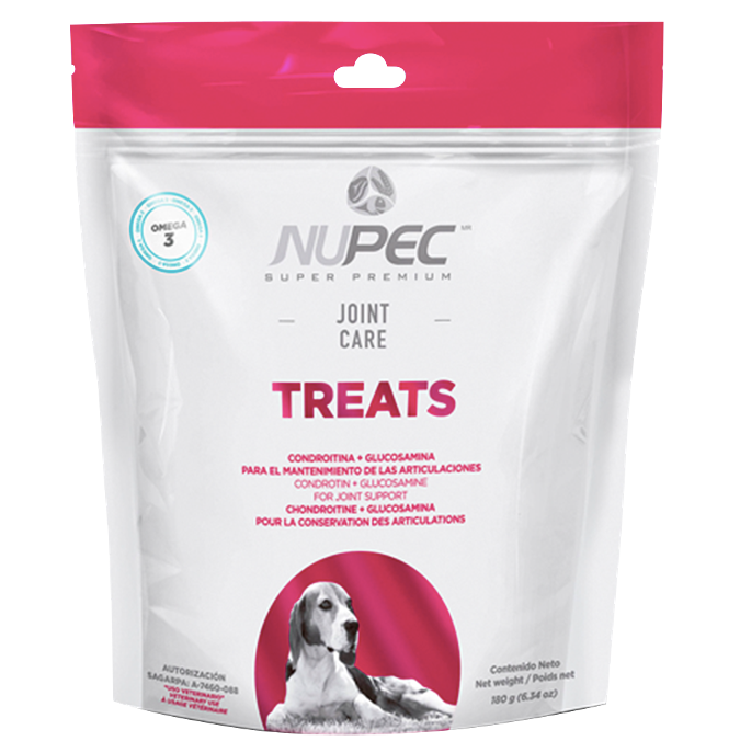 Los Premios para Perros para el cuidado de las articulaciones con glucosamina y condroitina para el mantenimiento de las articulaciones. Nupec Treats Joint Care.