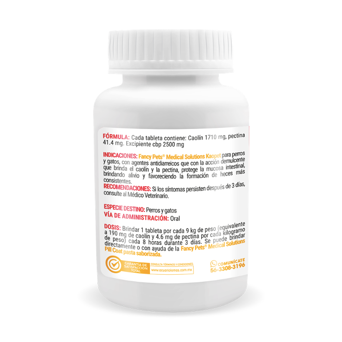 Alivio rápido de la diarrea: Su fórmula con caolín y pectina ayuda a reducir la frecuencia y consistencia de las evacuaciones. Protección de la mucosa intestinal: La acción demulcente del caolín la pectina recubre y protege las parades del intestino. Mejora la consistencia de las heces: Favorece la formación de heces mas firmes, ayudando a mantener una mejor salud digestiva. Fácil administración: Tabletas diseñadas para un suministro cómodo en perros y gatos. Ideal para todas las razas y tamaños: Su versatilidad lo hace adecuado para mascotas de diferentes tamaños y pesos.