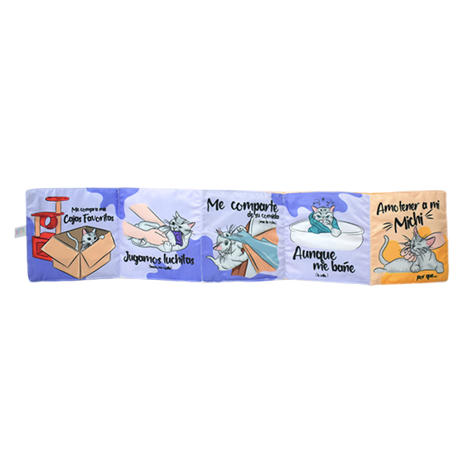 El libro Michistorias de Fancy Pets fue diseñado especialmente para los gatos y sus dueños, contando anécdotas divertidas de experiencias que todo dueño de gatos ha vivido en algún momento. Hecho con una textura estimulante y segura para que los gatitos jueguen. Relleno con catnip para mantenerlos estimulados e interesados todo el tiempo.