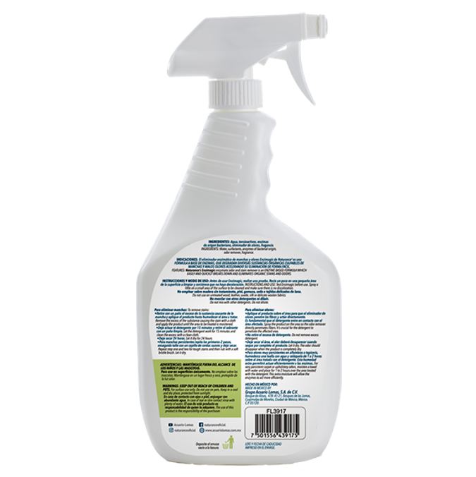 Elaborado con una fórmula enzimática de limpieza superior que además ejerce acción desodorizante que te ayudará a deshacerte de manchas, orina y desechos que dejan las mascotas en tus alfombras y tapetes.