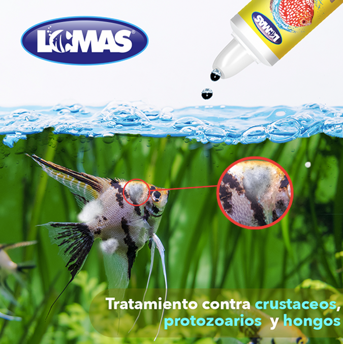 Antiparasitario general contra crustáceos, protozoarios y hongos de dosis única, exclusivo para acuarios de agua dulce. Por su bajo índice de toxicidad puede ser utilizado en especies sensibles a medicamentos como el cobre, formol y verde de malaquita.