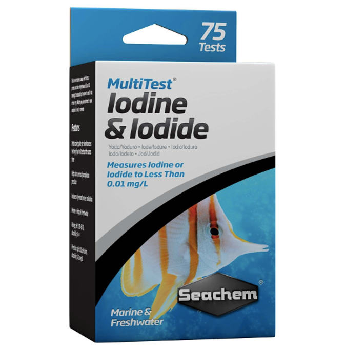 El innovador kit MultiTest Iodine/Iodide ofrece una prueba cuantitativa para este importante elemento del crecimiento de coral blando y duro. Mide yodo o yoduro a menos de 0,005 mg/L. La escala de color alcanza un máximo de 0,10 mg/L. Realiza más de 75 pruebas y contiene una muestra de referencia para su validación.