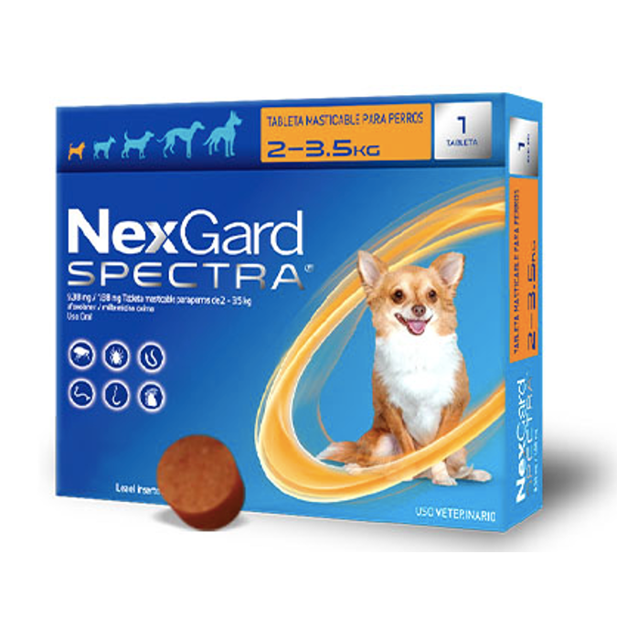 NexGard Spectra elimina pulgas, garrapatas, gusanos y sarna con un solo bocado sabroso al mes.