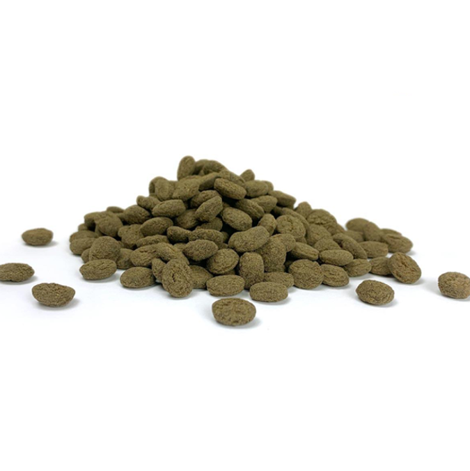 Es el mejor alimento para una gran variedad de plecostomus y otros peces herbívoros. Está formulado con camarones espada silvestres (25%), hojas de camote recién cosechadas, hojas de moras, Spirulina natural, algas, ajo y una mezcla de ingredientes naturales cuidadosamente seleccionados. ofrece una excelente palatabilidad y una completa gama de valores nutrimentales para plecostomus herbívoros y peces tropicales. Presentan un formato redondeado con forma de “pastillas” de hundimiento rápido. Estas pastillas se humectan rápidamente, pero tardan varios minutos en descomponerse con el fin de aumentar su aprovechamiento por parte de los peces. Sin añadir ningún tipo de coagulante, este delicioso pastel de camarones se elabora mediante un amasado constante de la masa de ingredientes frescos y 10 horas de proceso de cocción a baja temperatura, mientras que lo complementamos con probióticos de cepas múltiples de UF que facilitan la descomposición de las excretas y de los residuos para mantener el agua limpia.