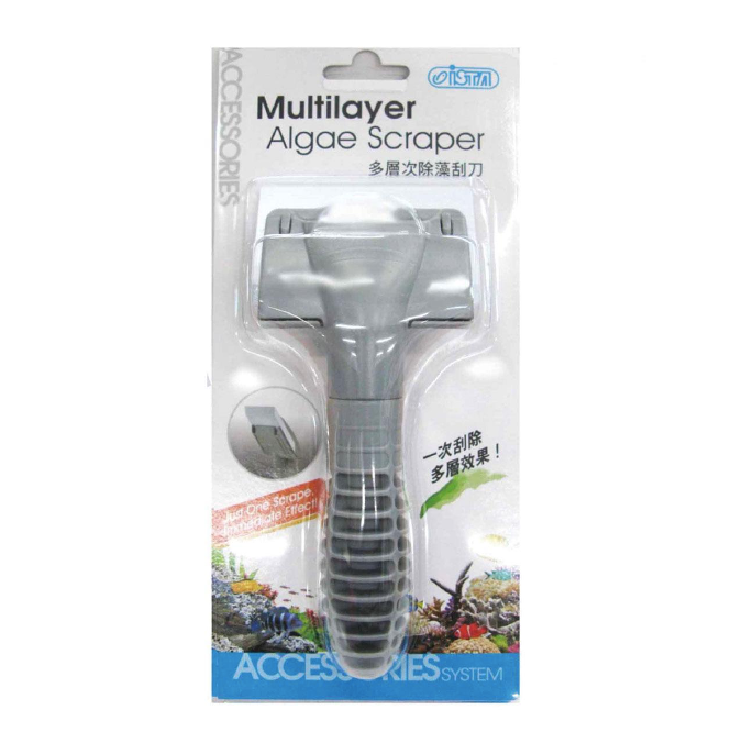 La La Rasqueta multi-hojas ISTA para acuarios de vidrio y acrílico remueve todos los tipos de algas e incrustaciones de las paredes en una sola pasada y sin ningún riesgo de ralladuras gracias a sus 11 láminas elaboradas con un plástico y atóxico con propiedades de flexibilidad similares al usado en las tarjetas de crédito.