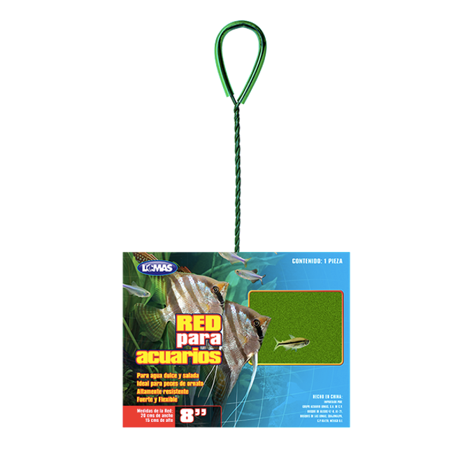 Red de malla resistente y elástica que facilita el manejo de peces a la hora de moverlos de acuario. Su malla permite que se seque rápido, con mango plastificado que evita la oxidación.