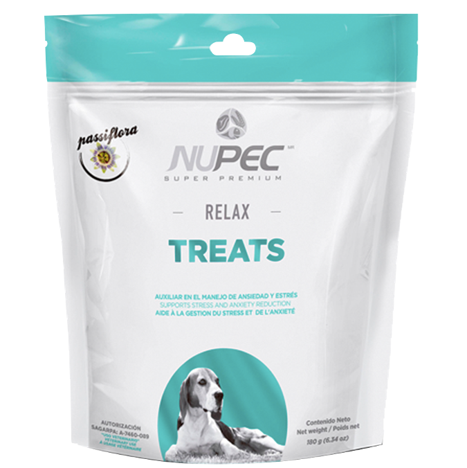 Premios Nupec Relax Premios con ingredientes funcionales que ayudan a disminuir la ansiedad de tu mascota, mejorando su calidad de vida. BENEFICIOS: Con Passiflora incarnata, que genera un efecto relajante. Contiene complejo B, esencial para mantener saludables las funciones del sistema nervioso central.