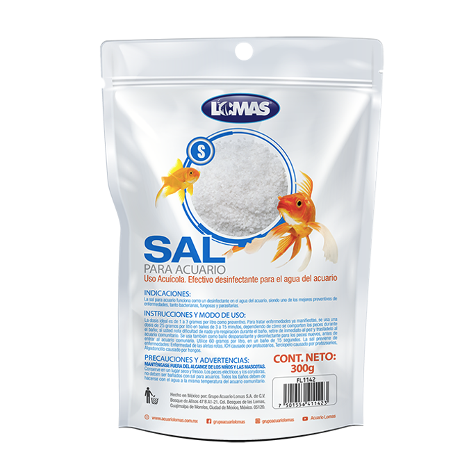 La sal para acuario funciona como un desinfectante en el agua del acuario, siendo uno de los mejores preventivos de enfermedades, tanto bacterianas, fungales y parasitarias. Muy utilizado para el tartamiento de afecciones de la vejiga natatoria, existen varias causas que producen esta patología como las infecciones bacterianas, cambios bruscos de temperatura y alteraciones genéticas