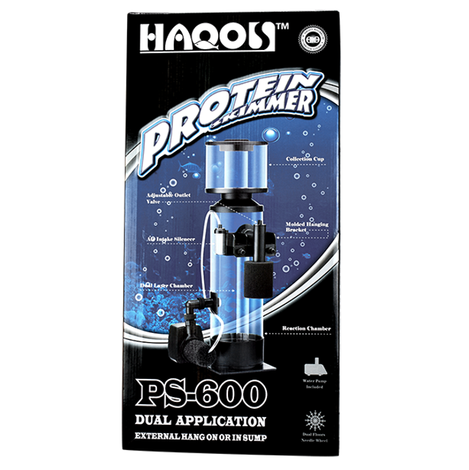 Separador de proteínas para acuario marino o de arrecife. Elimina materia orgánica antes de que sea metabolizada, además de que oxigena el agua. Simulando la separación que hacen las olas, el espumador por medio de micro burbujas atrae proteínas y residuos orgánicos que luego se eliminaran en la copa recolectora. Posee una cámara de reacción de acrílico, con doble capa que reduce la cantidad de micro burbujas cuando el agua regresa o se devuelve en el acuario. También se incluye un silenciador de admisión de aire para reducir el ruido inesperado.