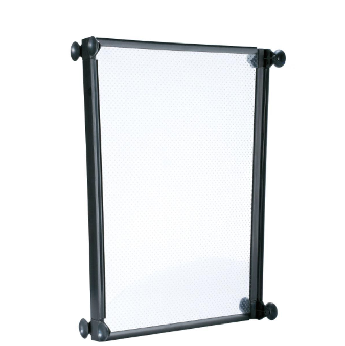 Gracias a las guías fijadas mediante robustas ventosas puede quitar y poner el panel transparente del Separador perforado APD-01 en segundos sin desmontar el marco soporte.