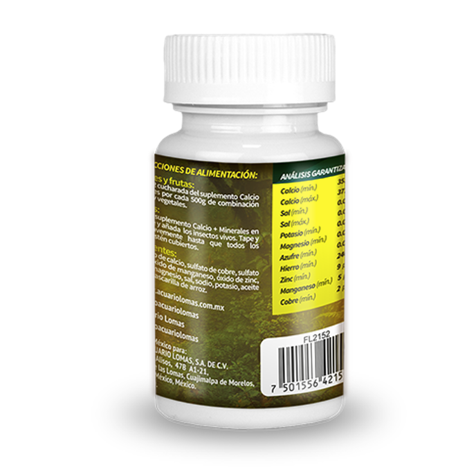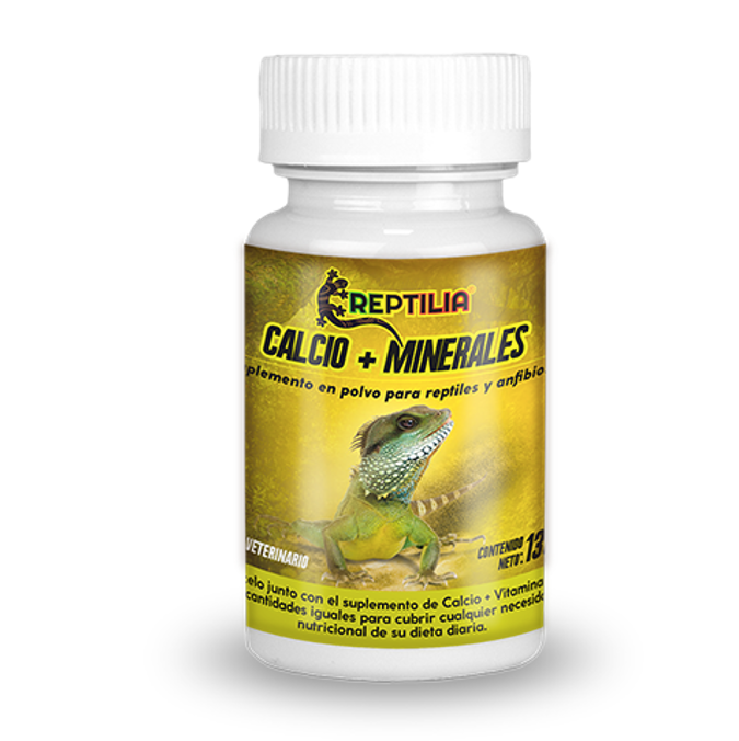 Suplemento de calcio con minerales para reptiles y anfibios, fortificado con minerales para un óptimo desarrollo y crecimiento.