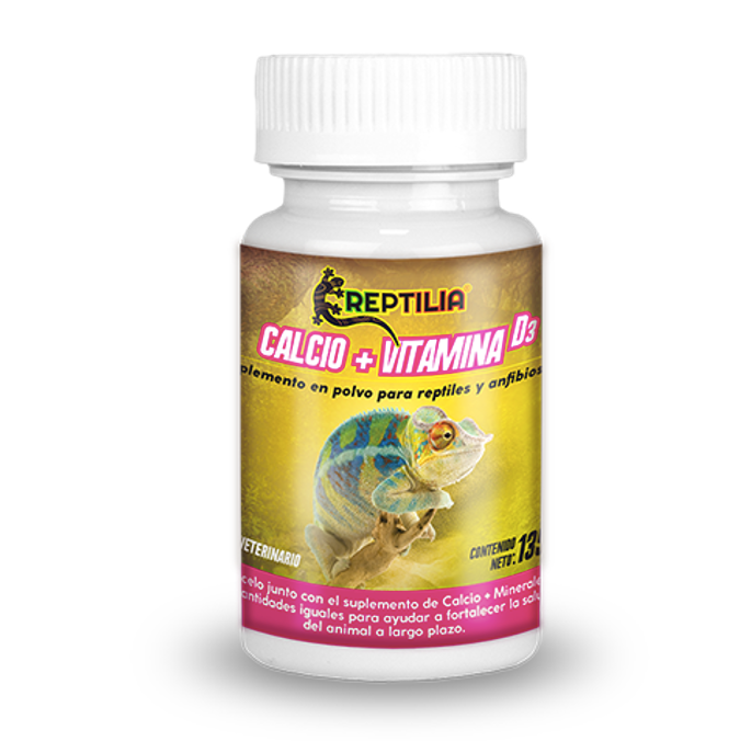 Suplemento de calcio con vitamina D3 para reptiles y anfibios. Favocere la absorción y metabolismo de calcio en aquellos ejemplares en etapas con mayores requerimientos de calcio.