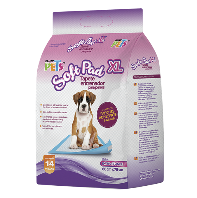 Tapete de entrenamiento desechables, que ayudan al entrenamiento de perros y protección para pisos. Con superficie acolchonada y de gran absorción, además contiene atrayente para facilitar el entrenamiento. Su sistema de red está diseñado para la distribución de los líquidos por todo el tapete que junto con las 4 capas de polímeros ultra absorbentes evitará algún derrame.
