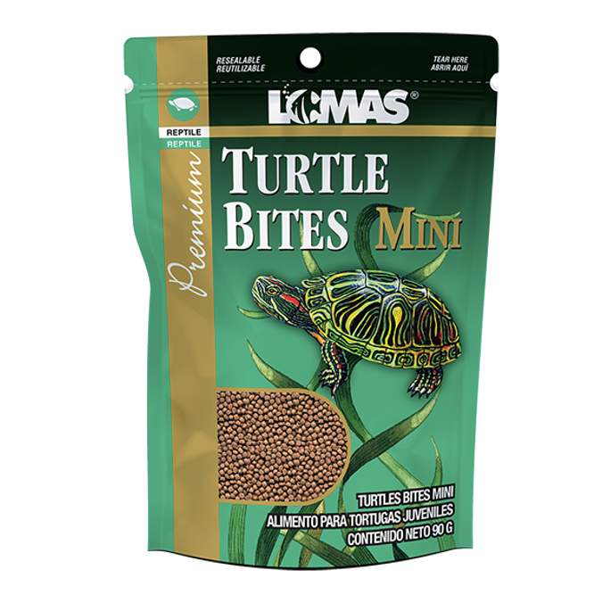 Premium Turtle Bites Mini es un alimento ideal paraejemplares juveniles o de una mordida pequeña de reptiles acuáticos, pellets nutricionalmente balanceados y flotantes. Formulados con una amplia variedad de ingredientes naturales. Contiene vitaminas y minerales en cantidades adecuadas para el correcto desarrollo del caparazón de las tortugas.